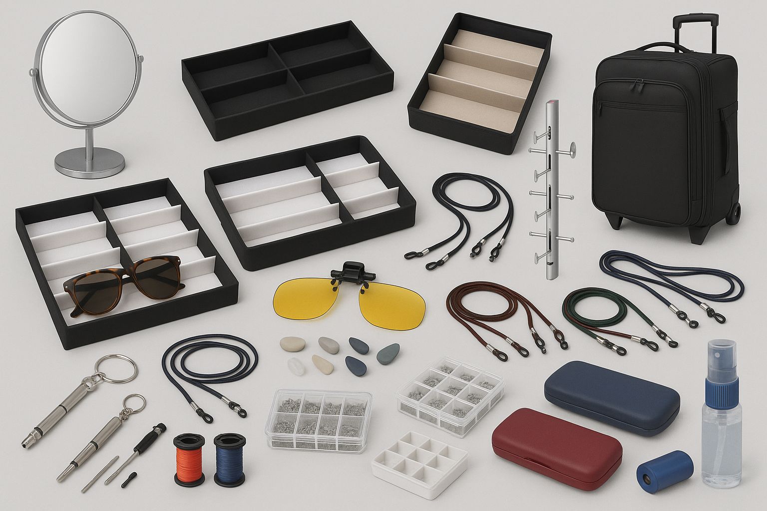 - Eyewear storage and travel bags with trolley